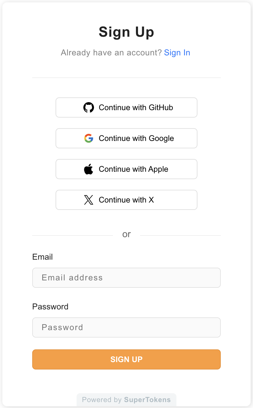 At this stage, you've successfully integrated your frontend with SuperTokens. The next section will guide you through setting up your backend.